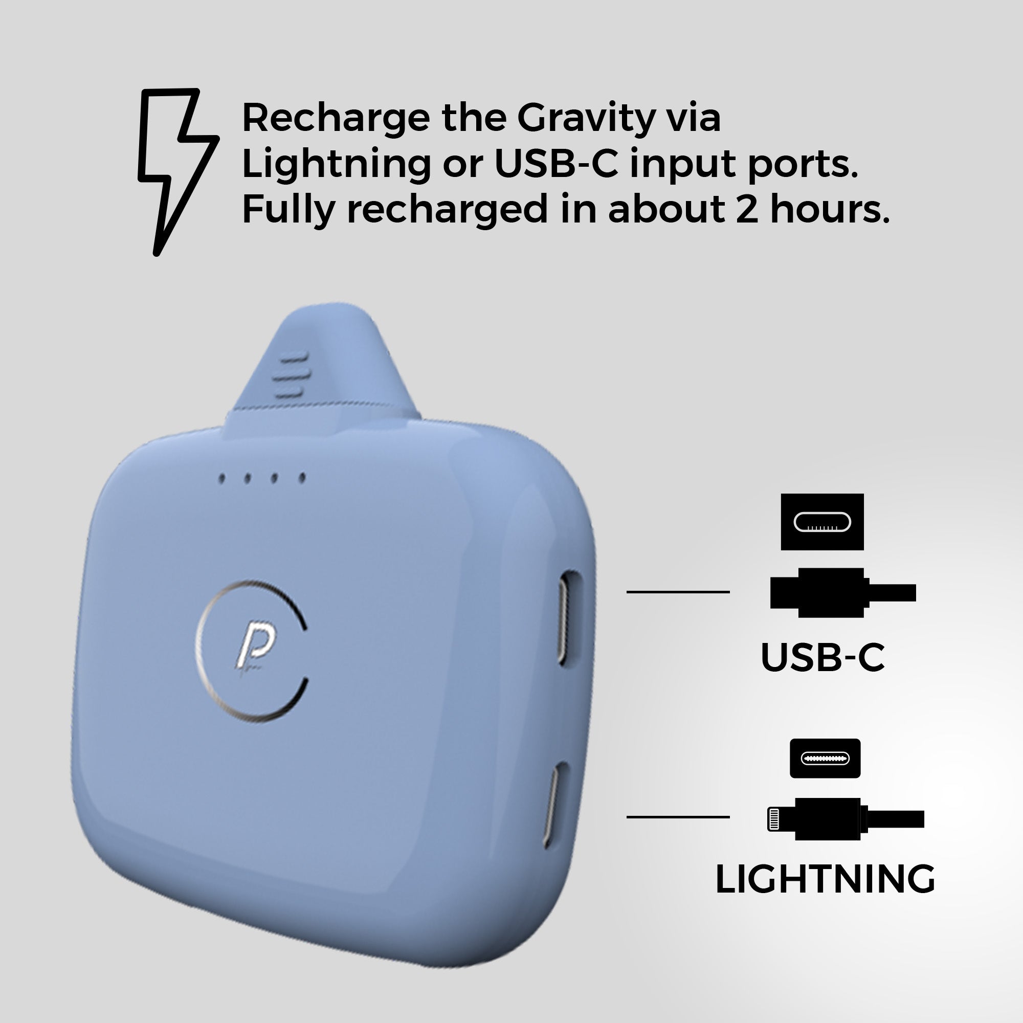 For an even more convenient way to charge, the Gravity has pass-through technology. This means that you can recharge your Gravity and charge your device at the same time!