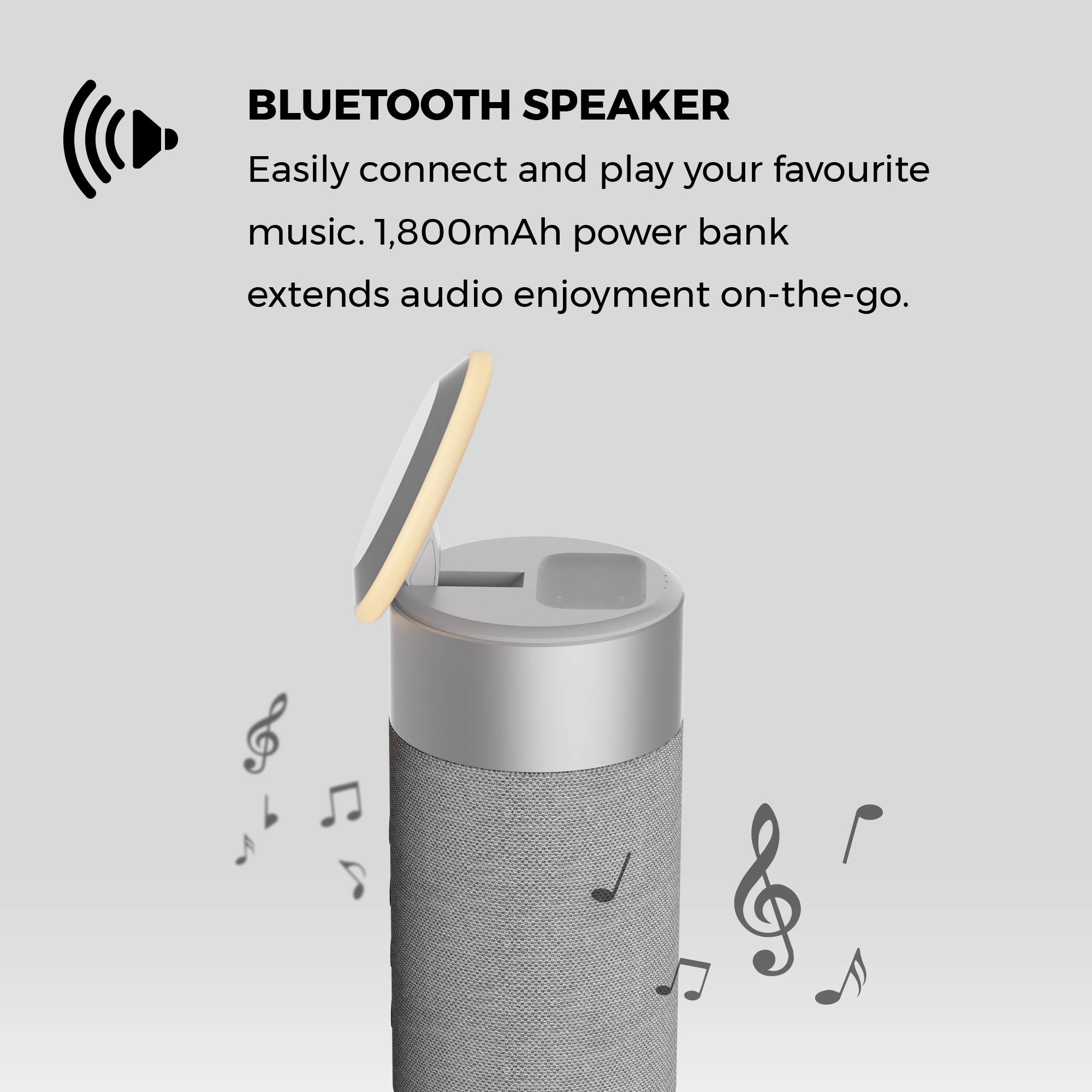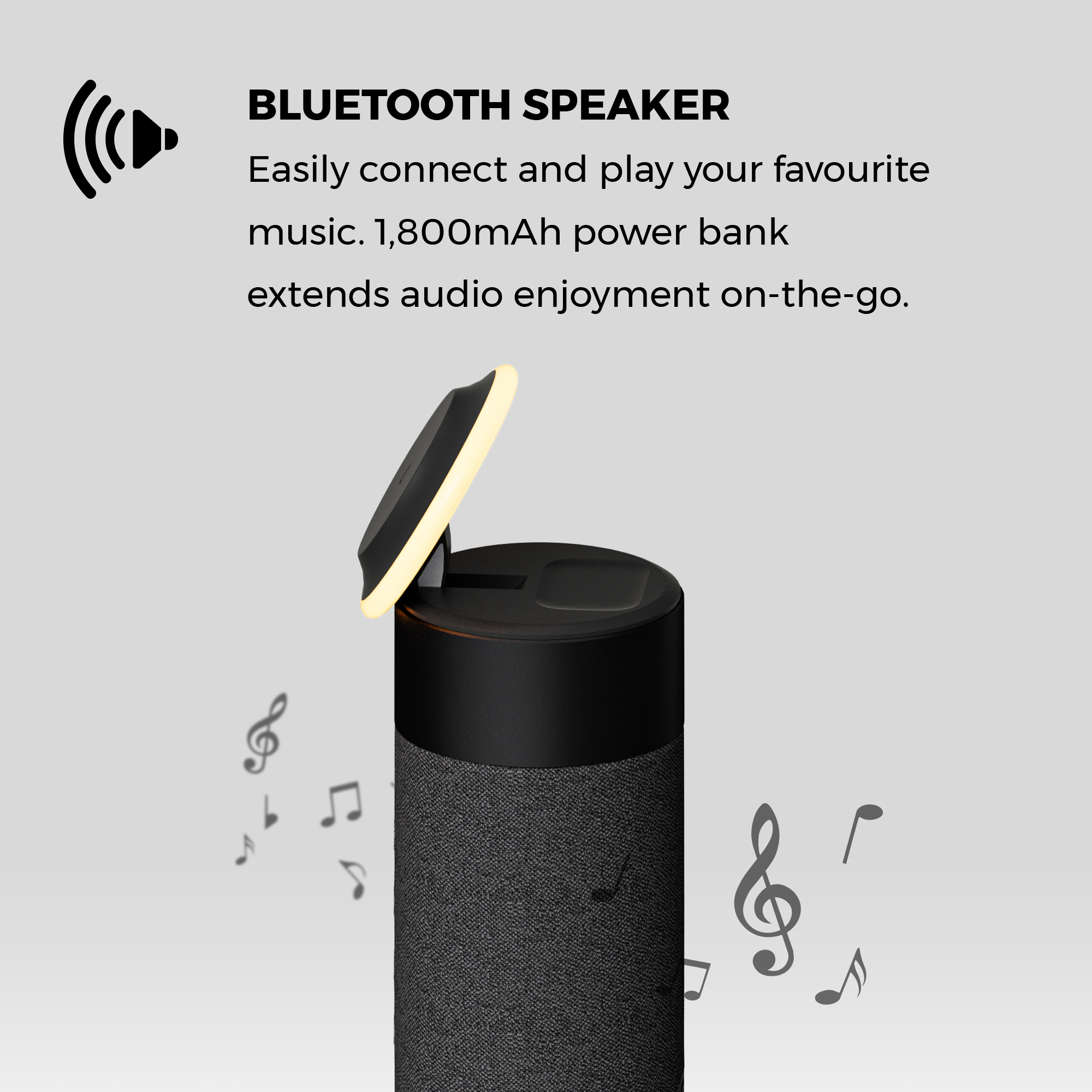 Wireless Bluetooth speaker allows you to easily connect and play your favourite music. The built-in 1,800mAh power bank extends audio enjoyment on-the-go.