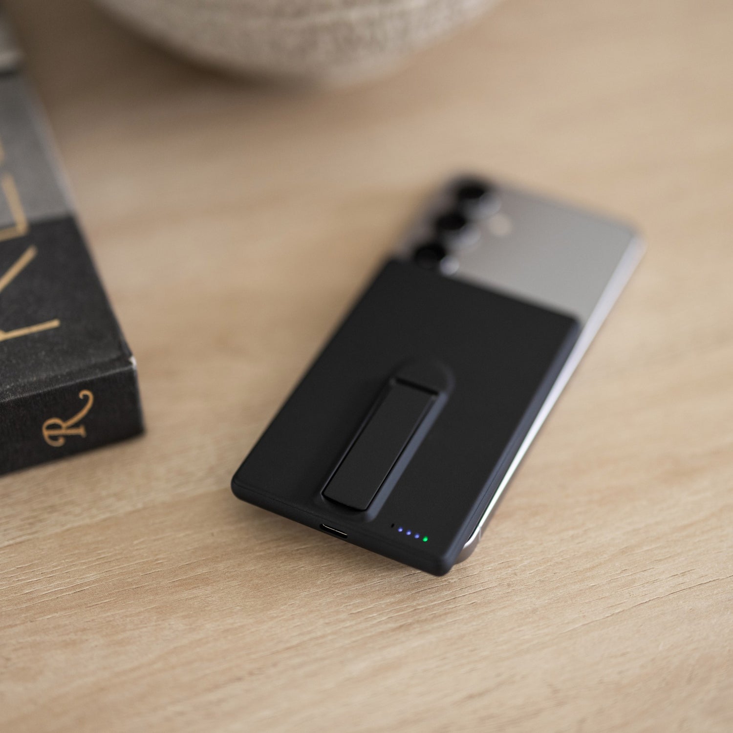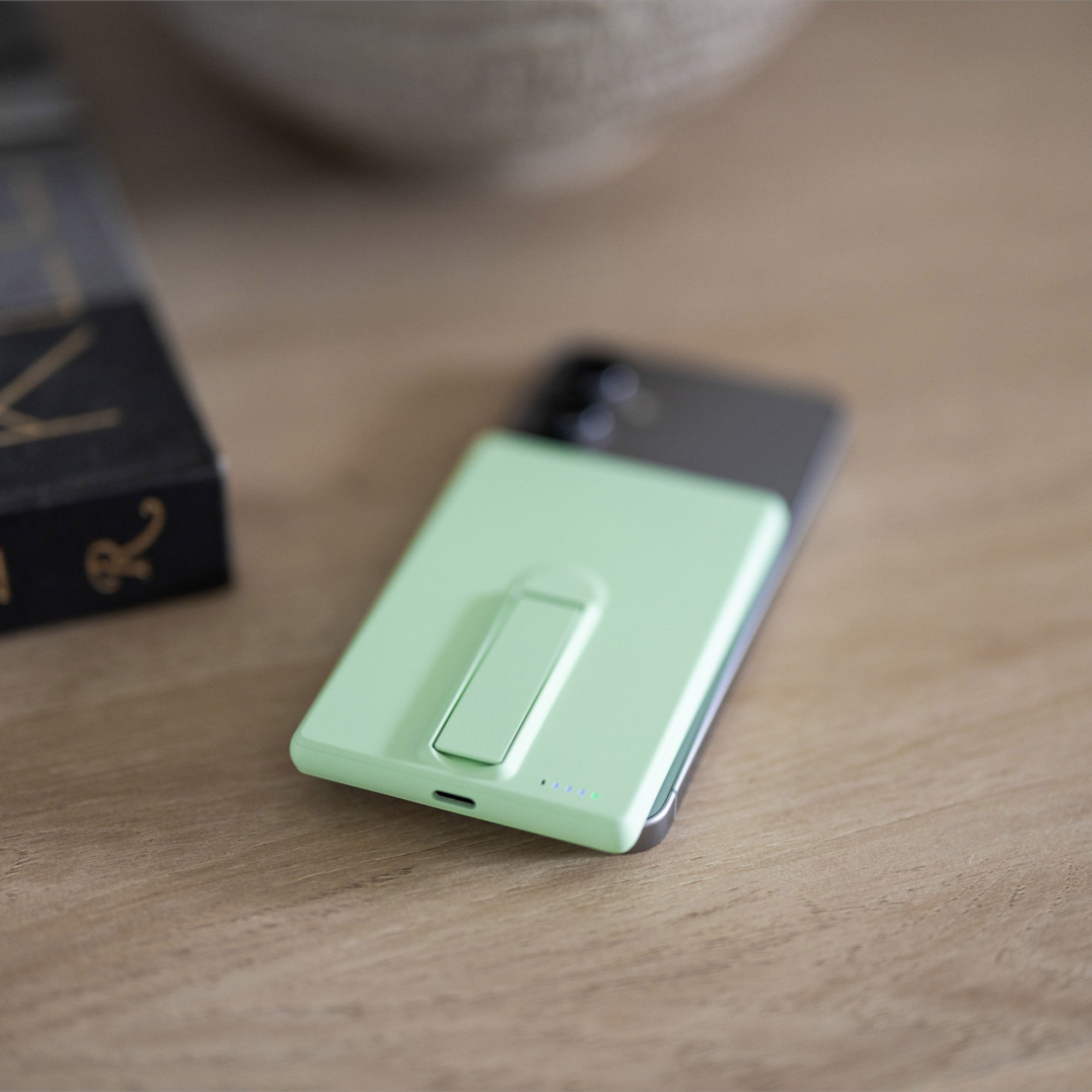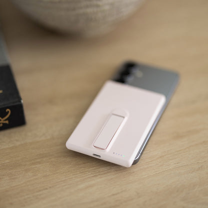 Infinity is a slim Qi wireless charger that magnetically attaches and fast-charges your phone, earbuds, or smartwatch. A spring-loaded kickstand on the back lets you view your phone in portrait or landscape while charging. Compact and travel-ready, it’s the perfect power solution for at-home or on-the-go.