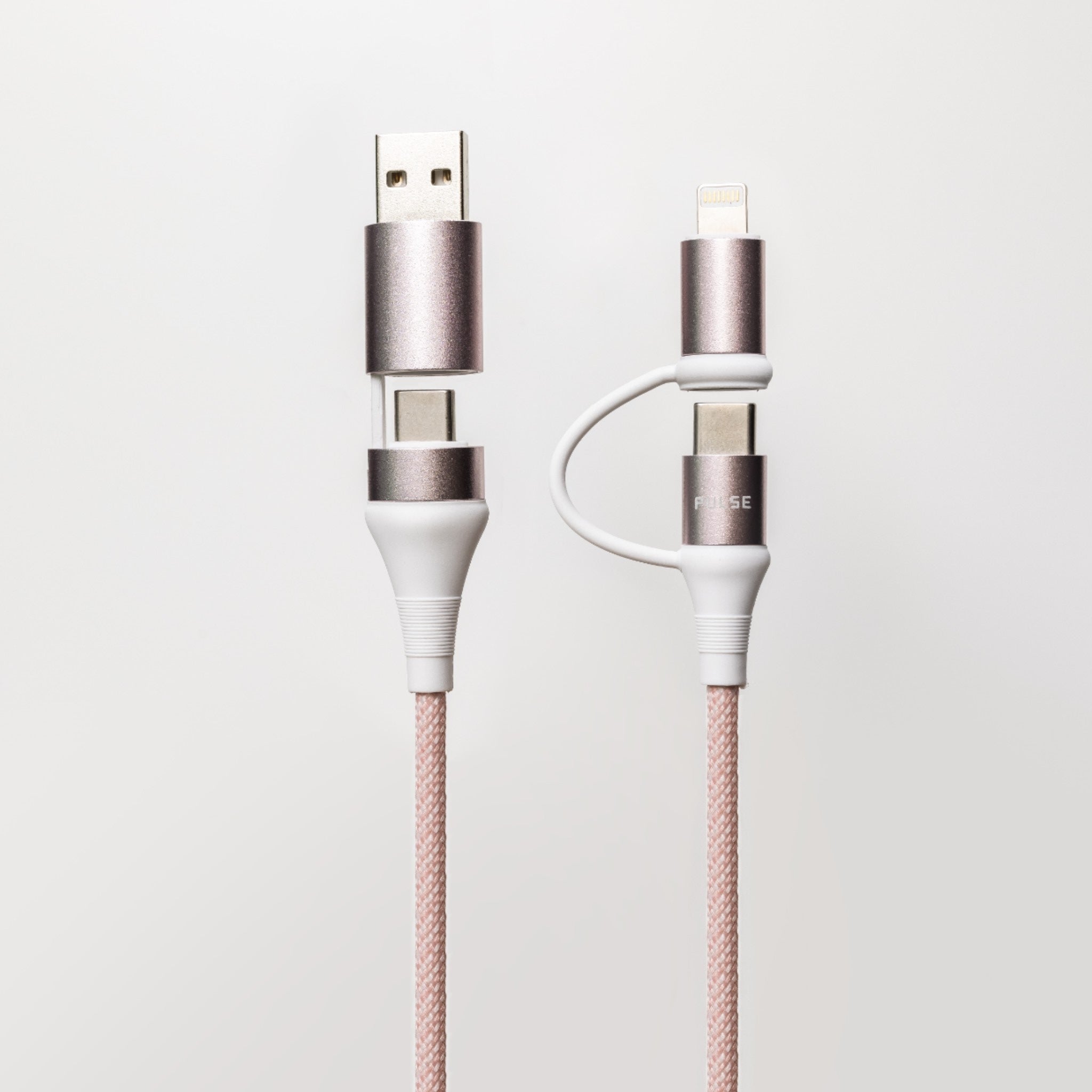 The 4-in-1 fast charging cable can power loads of devices. Below are each of the different ways to connect and charge your device using this single cable.
