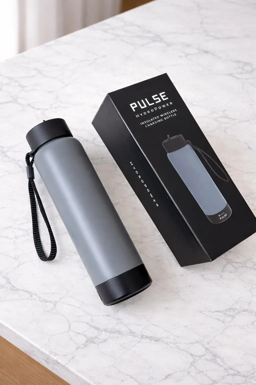 Store the included charging cable at the base of the bottle, above the power bank.