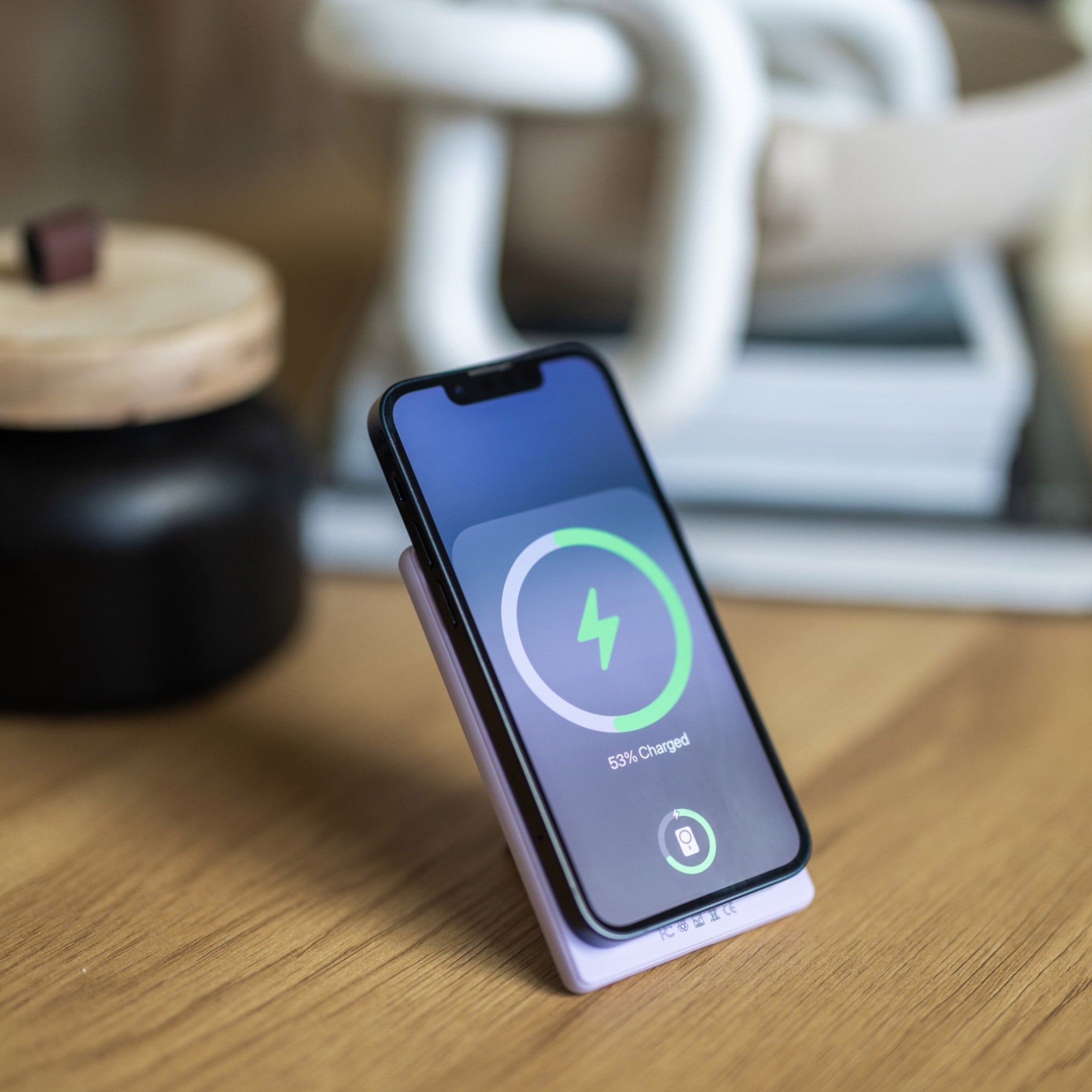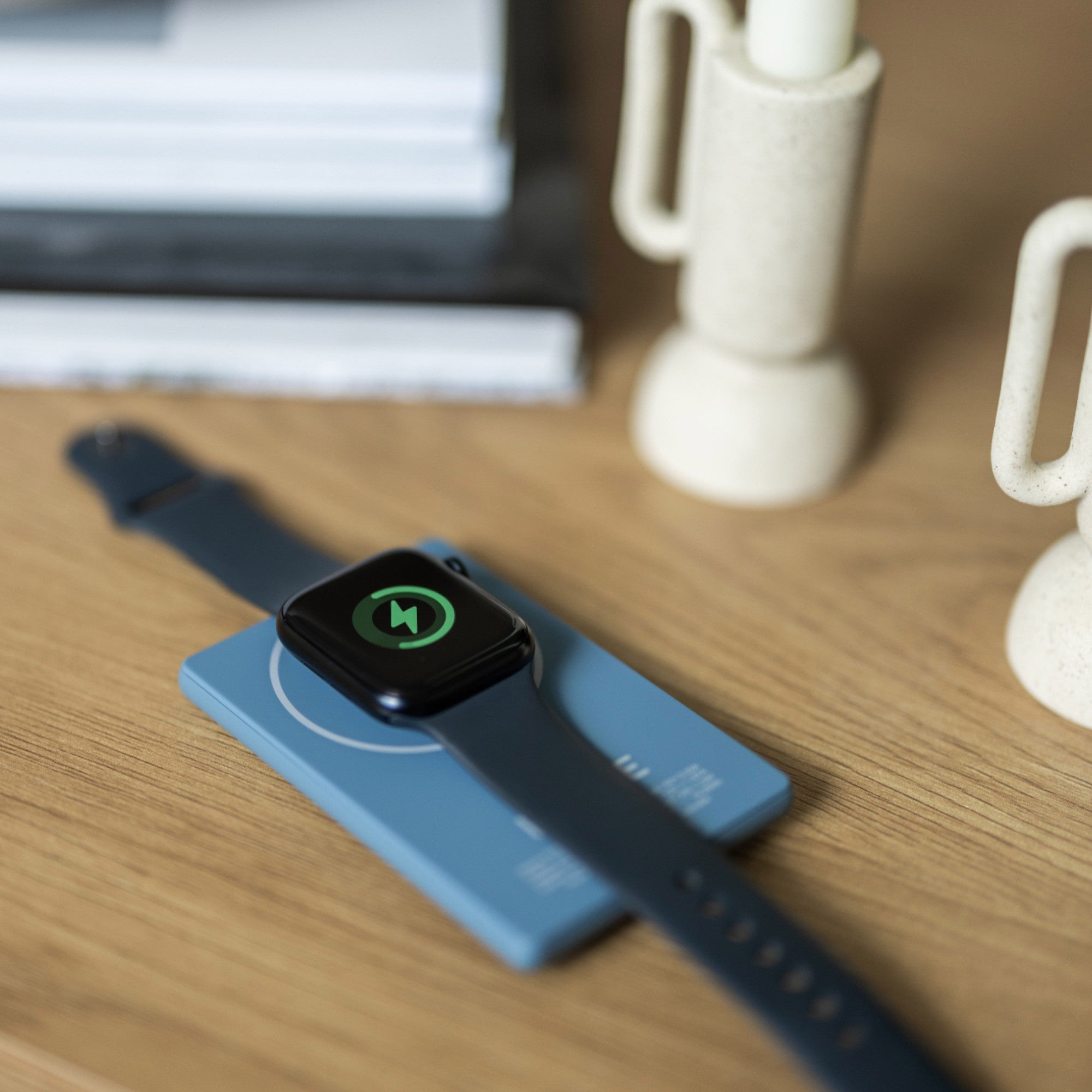 Wirelessly charges MagSafe and Qi-enabled phones, earbuds, or smartwatches- including Apple and Android devices.