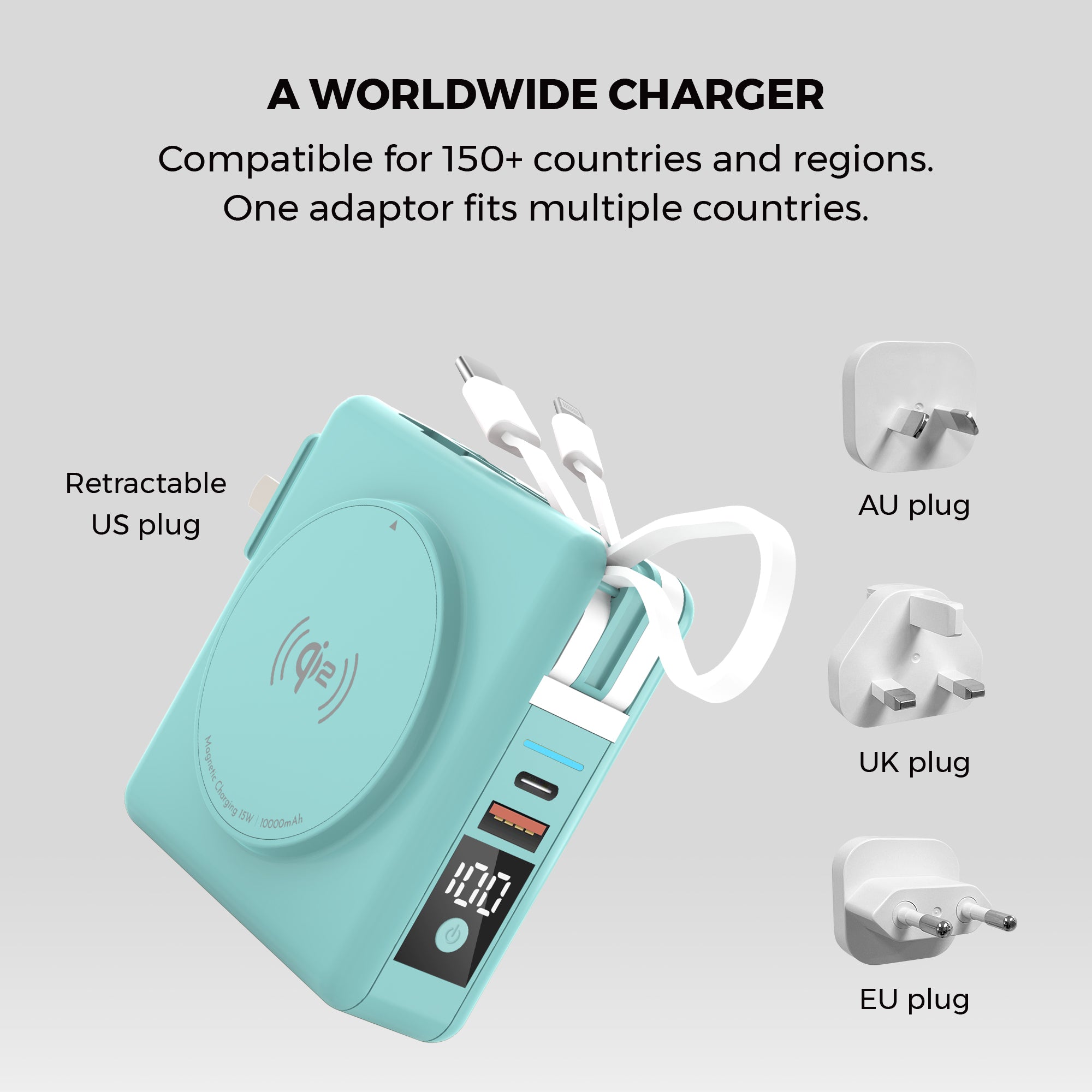 - Built-in retractable US plug