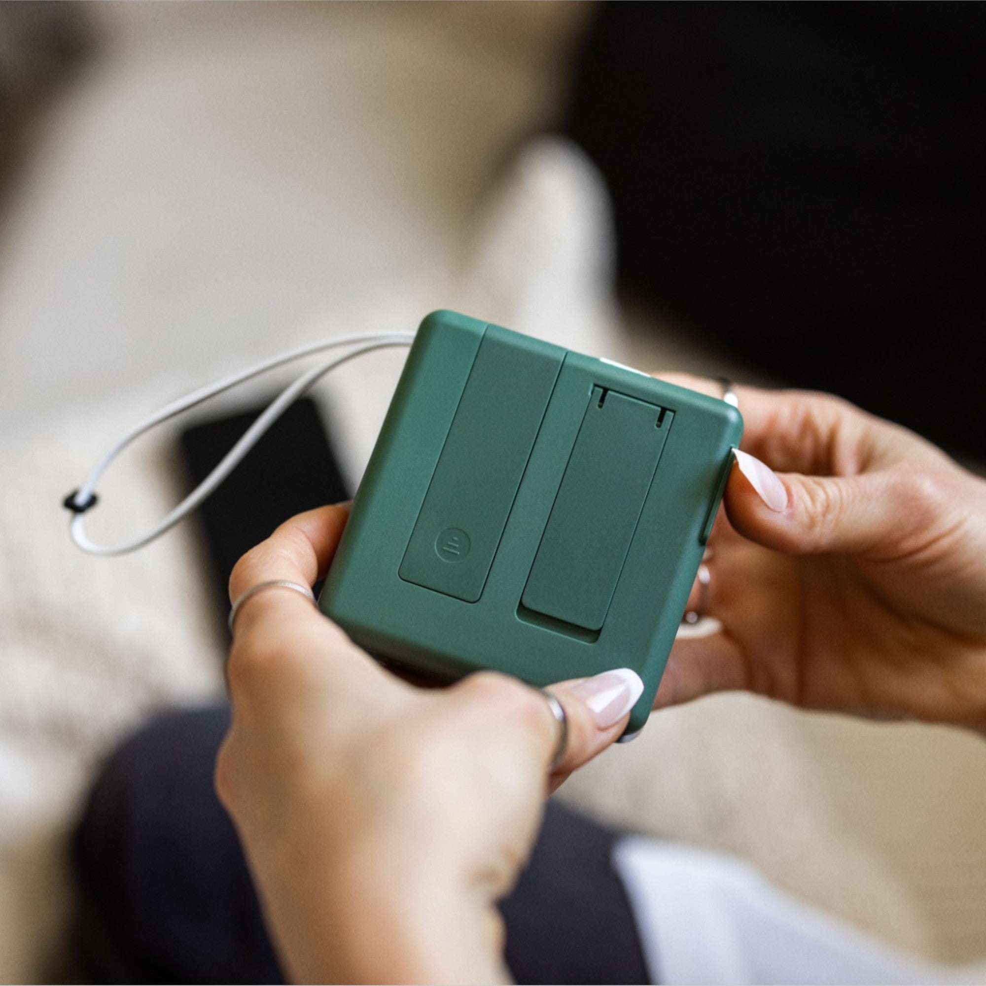 - Built-in, adjustable USB-C cable