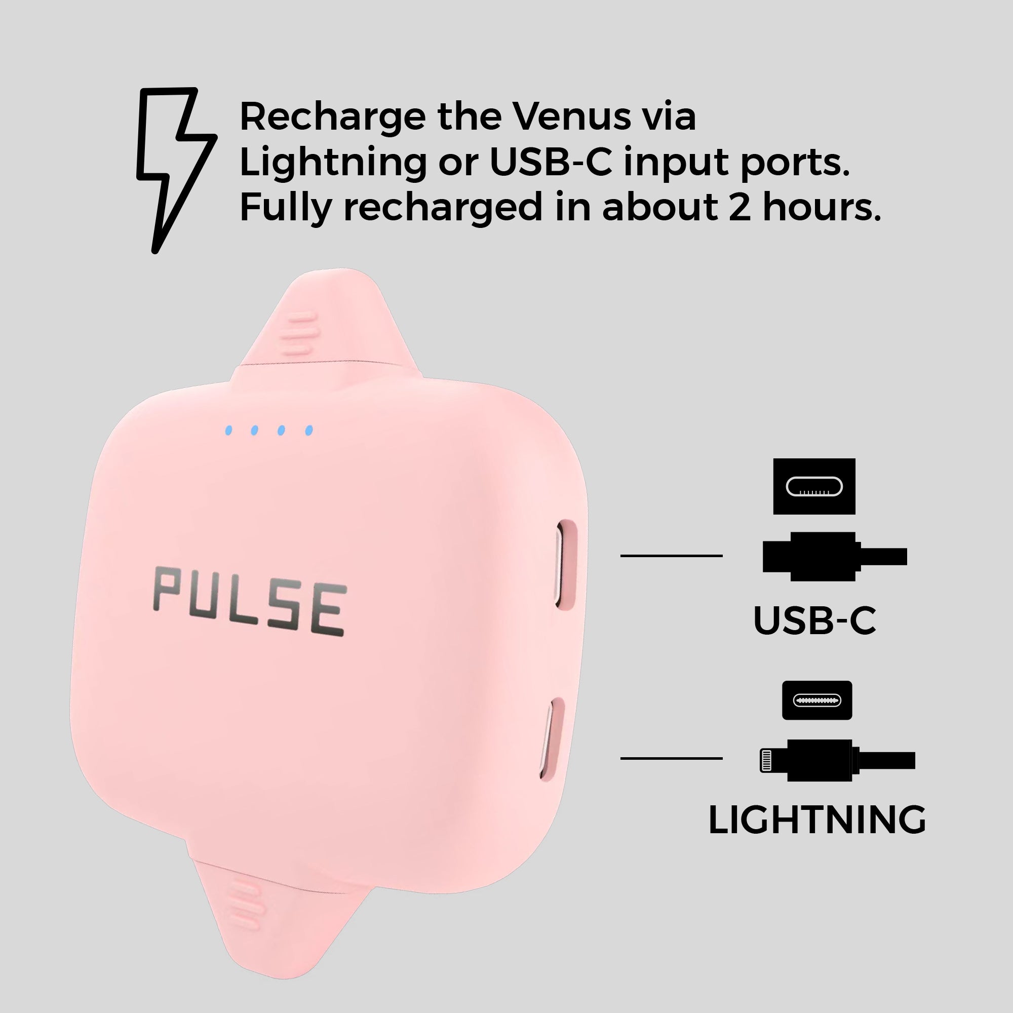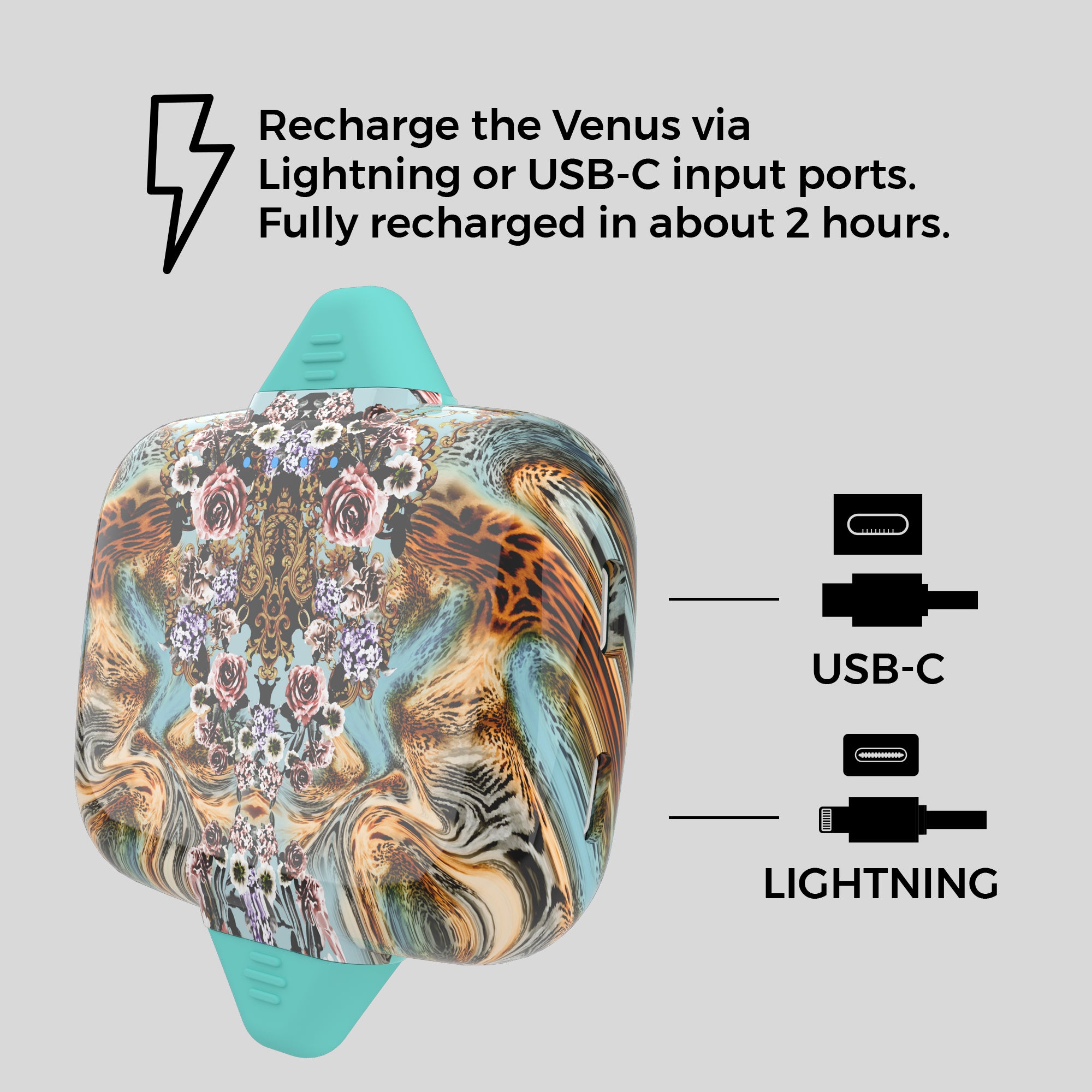 For an even more convenient way to charge, the Venus has pass-through technology. This means that you can recharge your Venus and charge your device at the same time!