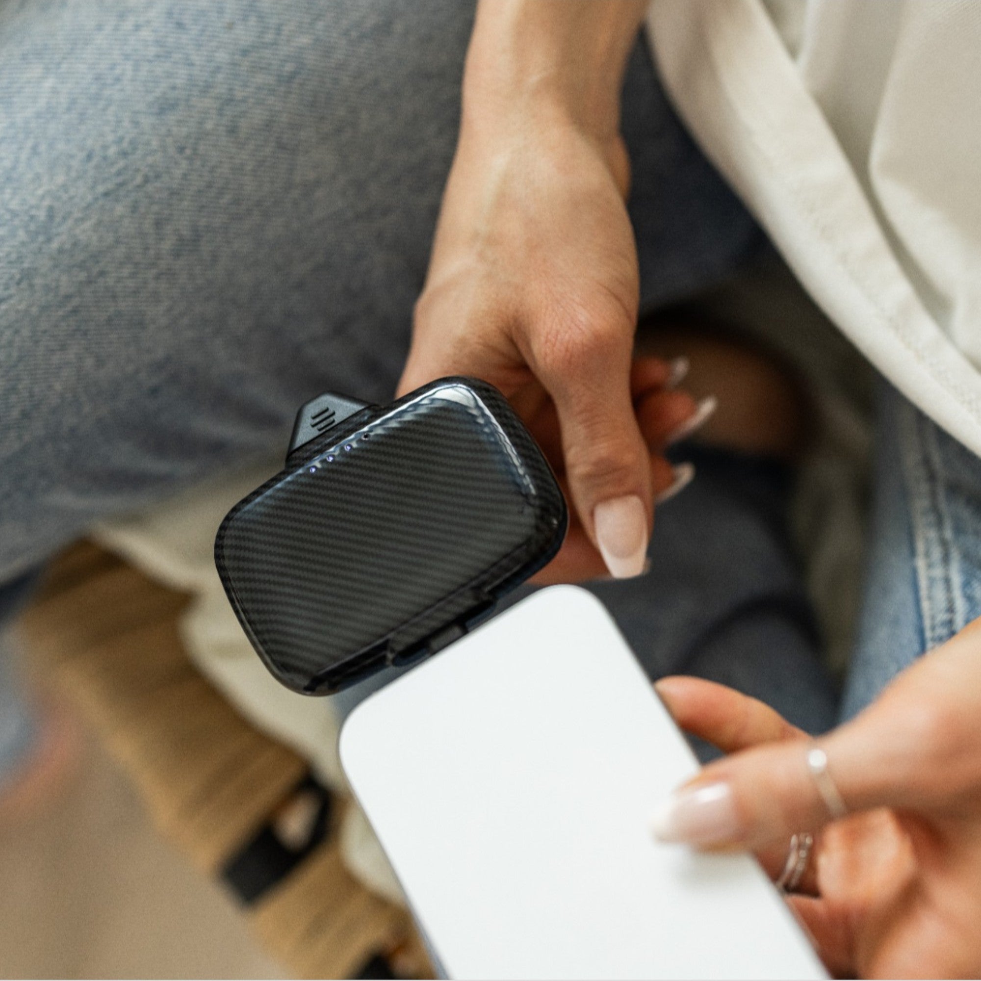 No, it's not recommended. Charging in a confined space restricts the device and can trap heat. For safer charging, keep both items in the open, where heat can dissipate naturally. When transporting Venus, cover the tips with the protective caps and then place it into your pocket or bag.